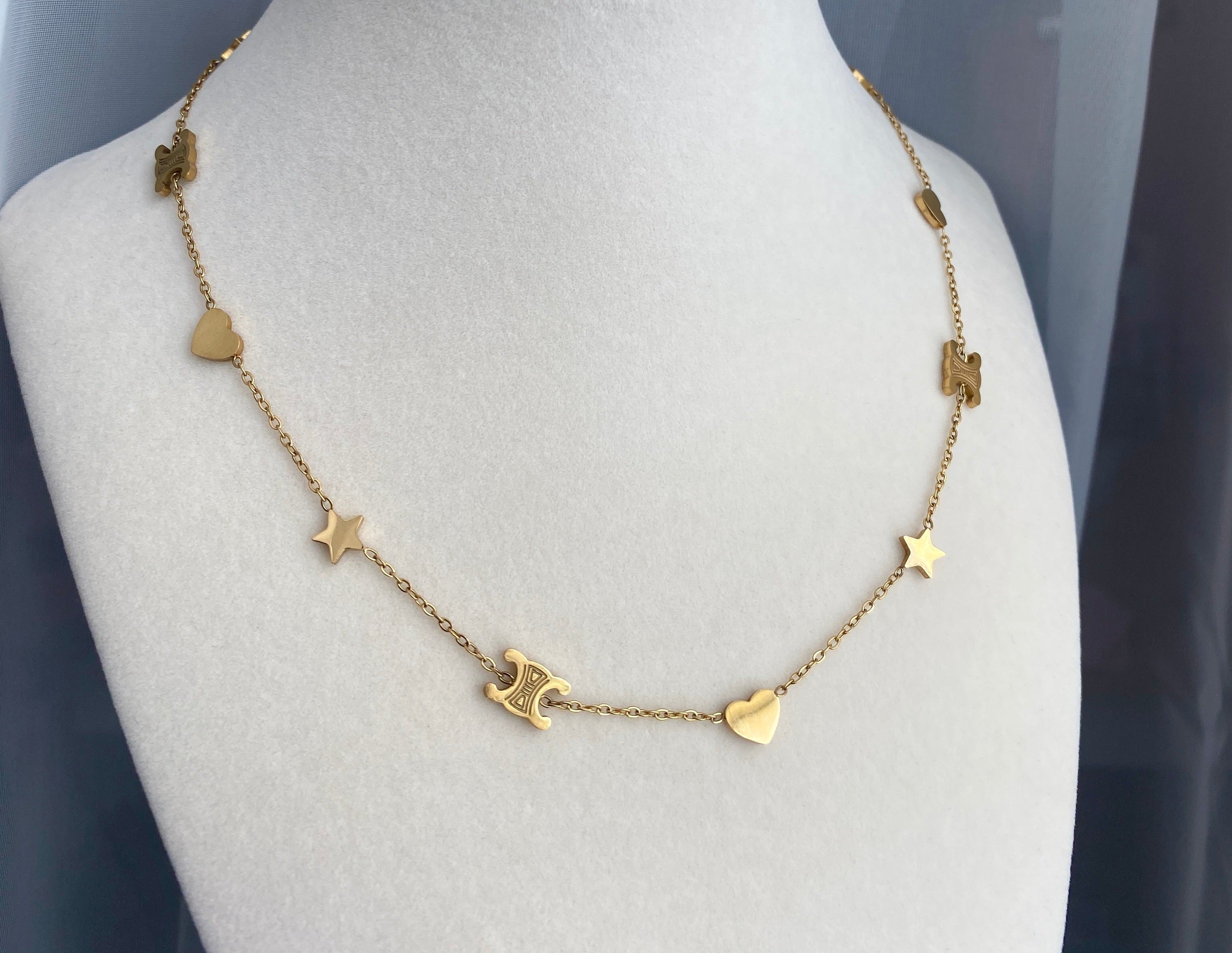 Gold Stainless Steel Stars n Hearts Necklace