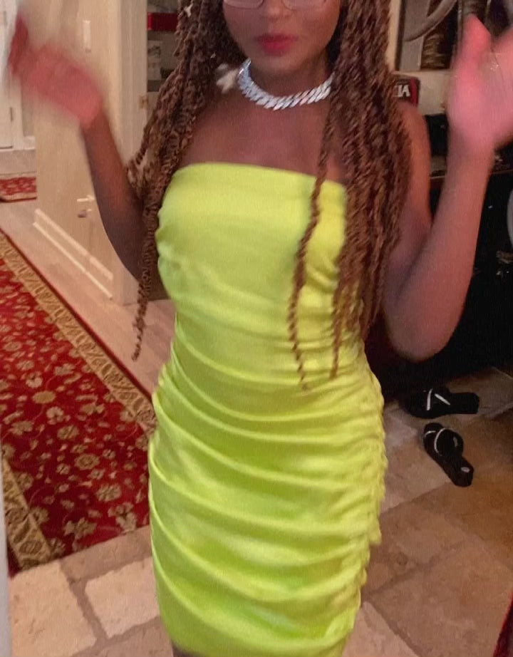 Neon Sleeveless Ruched Mini Dress